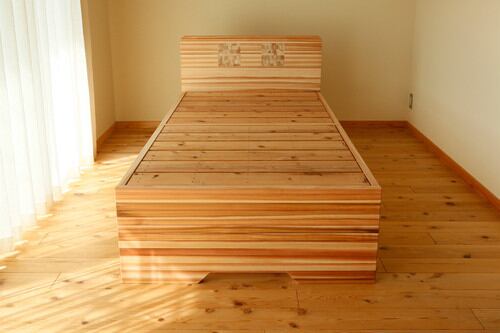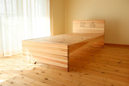 弊社のベッドは、マットレスなどではなく、敷き布団のような素材をお勧めしています。【百年杉】の精油分は皮膚からの経皮吸収が可能であると思われますので、そこを狙った製品となっています。
