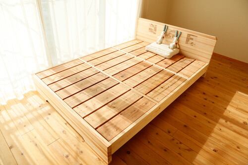 弊社のベッドは、マットレスなどではなく、敷き布団のような素材をお勧めしています。【百年杉】の精油分は皮膚からの経皮吸収が可能であると思われますので、そこを狙った製品となっています。